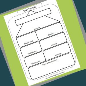The ‘word family’ links a base word with related words that have been extended or modified using affixes. Encourage students to create a visual reminder of what they have learned about how the words relate to each other.