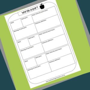 This ‘Words a-part’ example also uses the ‘Backyard Bioblitz – Flower Dissection‘ mentor text to demonstrate how to investigate key vocabulary before, during and after reading focusing on the words students will be using in their writing.